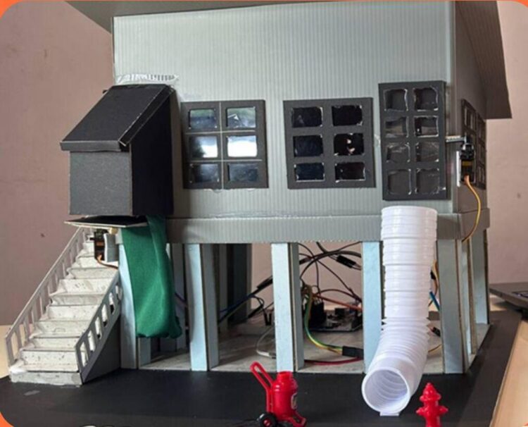 “Pada masa sama, sensor nyalaan pula menghasilkan bunyi buzzer kuat dan yang paling penting, ia mengaktifkan dua motor servo untuk membuka pintu keluar secara automatik.”