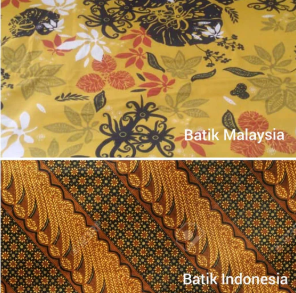 Kalau batik Indonesia, coraknya lebih geometrik dan sarat dengan simbol falsafah. Contohnya, corak parang dan kawung tak boleh dipakai sembarangan sebab dulu khas untuk golongan diraja.