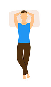 Dengan pendek kata, posisi ini menggambarkan baring lurus seperti askar berdir, di mana kaki tidak bengok dan lengan terletak lurus di sepanjang sis badan. Walaupun kedudukan tidak cukup selesa, kedudukan bantal adalah tinggi.