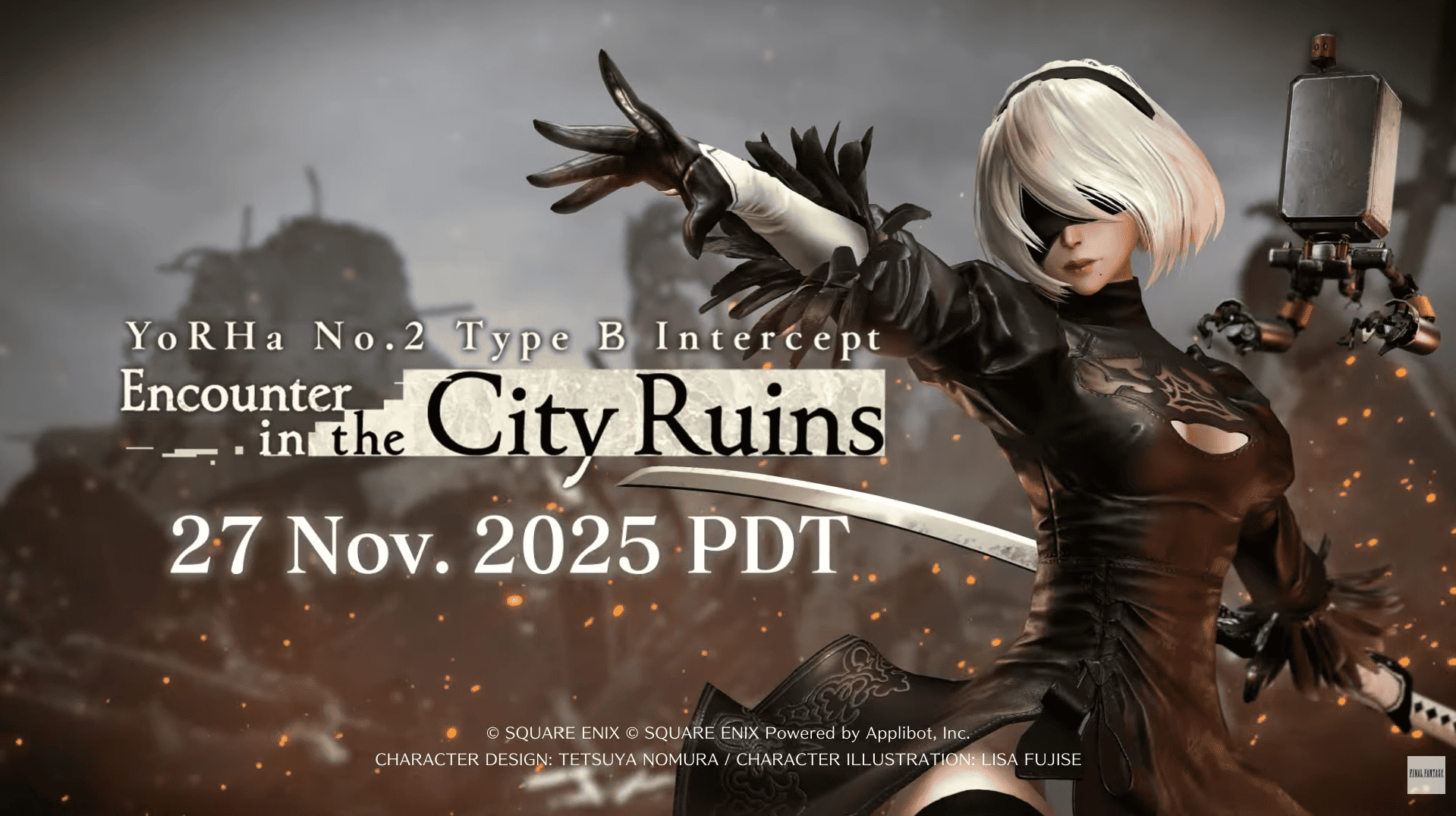 Acara crossover ini hadir dalam dua bahagian, dengan sorotan utama kepada misi pertarungan menentang YoRHA No.2 Type B. Misi khas tersebut akan tersedia bermula 5:00 PDT, 27 November, menerusi quest bertajuk “YoRHa No. 2 Type B Intercept: Encounter in the City Ruins”.