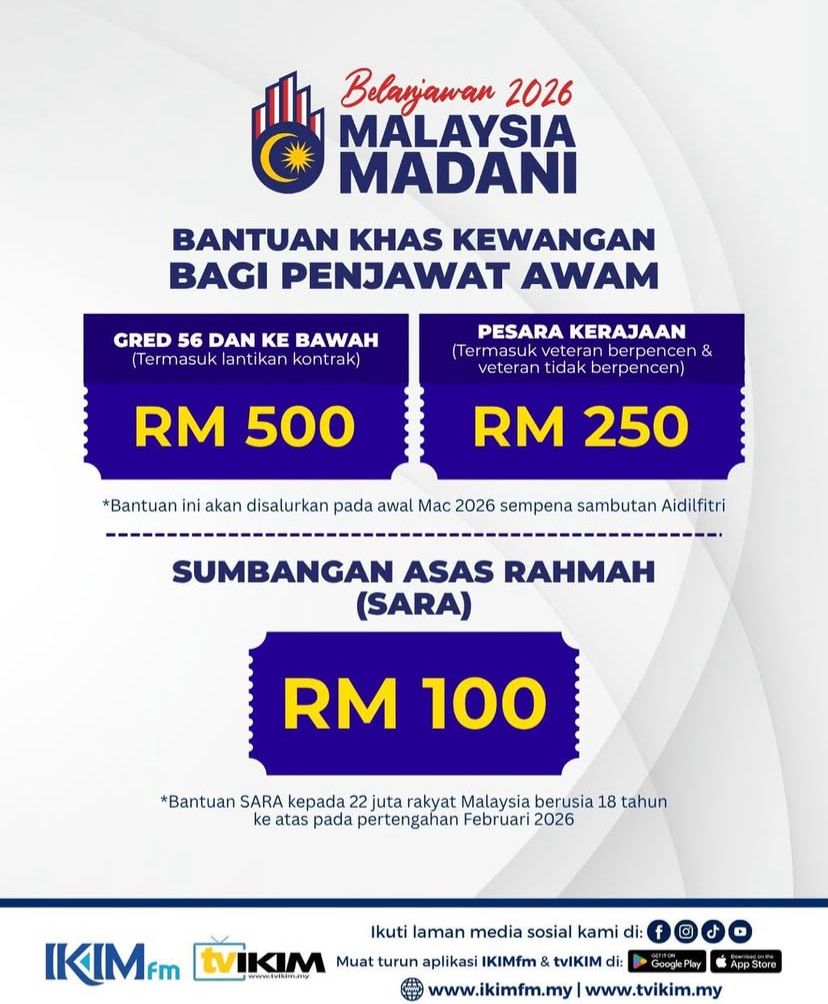 SUMBER RUJUKAN: “Belanjawan 2026: Bantuan Khas RM500 bagi penjawat awam” HARIAN METRO