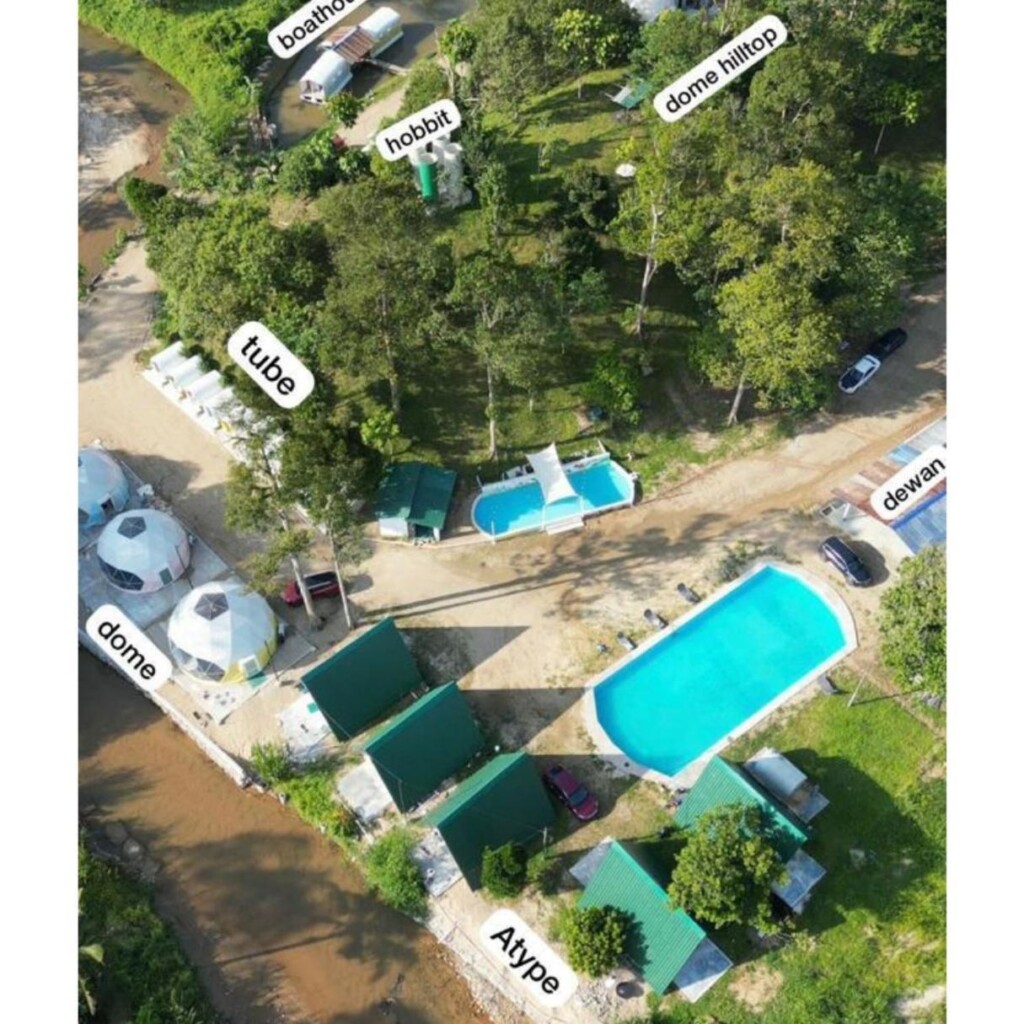 Dari segi keluasaannya, ia tidak menunjukkannya tetapi menurut ini terdapat 31 unit yang mempunyai kapasiti sehingga 100 tetamu, dan juga fasiliti seperti kolam renang, lubang BBQ, tandas, terletak di tepi sungai dan juga mempunyai tebing sungai; selain itu ada awayng pacak, ruang untuk ATV dan e-scooter, workshop, treasure hunt, penanaman pokok, dan permainan rakyat lima games untuk group besar: oleh itu, kawasan ini amat luas.