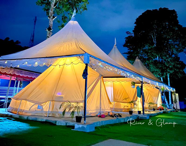- RM700 untuk Type 2 unit untuk 6 atau 7 dewasa dengan children di Glam 5 Premium Bell Tents (Poolside, Hillside, Upperside, atau Riverside)